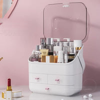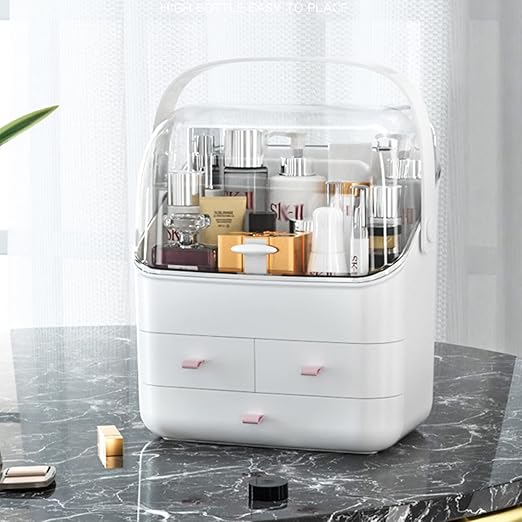 Waterproof Dustproof- This desktop makeup storage box with a transparent flip- type lid keeps your personal beauty items from dust and water, keeping your countertop neat and tidy.